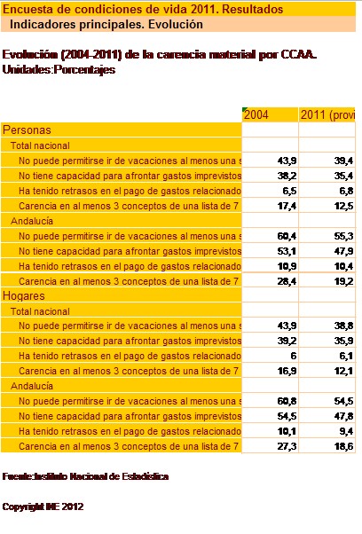 70. Condiciones de vida: Andalucía por debajo de la media nacional en vacaciones, en capacidad para afrontar gastos imprevistos, etc.