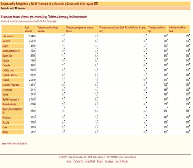72. Andalucía, por debajo de la media en equipamiento tecnológico de los hogares.