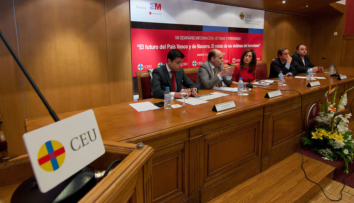 La segunda jornada del seminario que el Observatorio de Víctimas de la Universidad San Pablo CEU, que dirige Cayetano González, está celebrando sobre el futuro del País Vasco y Navarra ha tenido a los medios de comunicación como protagonistas. Carlos Cuesta, de El Mundo, Jaime González, de ABC, Alfonso Merlos de 13 Televisión y el director de Libertaddgital.com, Raúl Vilas, han departido sobre el papel de los periodistas tras el comunicado de ETA del 20 de octubre pasado.