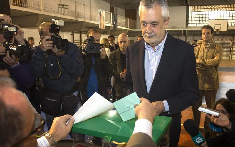 El candidato del PSOE a la Junta de Andalucía, José Antonio Griñán, ha sido el primero de los candidatos en depositar su voto en las urnas andaluzas. El más madrugador, aunque fuera a las 10:30 de la mañana, y acompañado de su mujer, ha acudido al Colegio Aljarafe de la localidad sevillana de Mairena de Aljarafe, donde reside hace años, y donde ha achacado al cambio horario la poca afluencia de los colegios electorales.