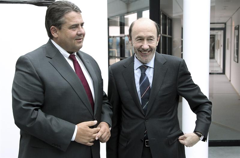 - El debate de los Eurobonos: Sigmar Gabriel, el presidente del SPD, incluye en su discurso, como no podía ser menos, la defensa de políticas de crecimiento y de estímulo. Pero hay líneas rojas muy claras que le alejan claramente del socialismo español. Los Eurobonos, una de las exigencias de Rubalcaba para Europa, son un tema prácticamente tabú en Alemania, cuya opinión pública tiene una sensación cada vez más acusada de ser los ‘paganos’ de esta crisis. El SPD, que aspira a derrotar a Merkel en 2013, no es una excepción: todos los medios destacaron hace unas semanas cómo el SPD y sus socios naturales, Los Verdes, se manifestaron claramente en contra de la propuesta que en esos momentos defendía Hollande en campaña. "Eso sería garantizar de forma conjunta la deuda, no lo habrá en la Unión", zanjó un rotundo Gabriel en declaraciones a la ARD.