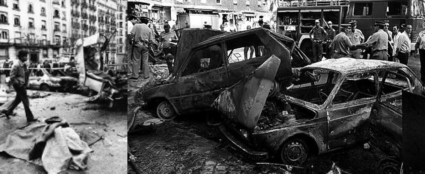 (A la izquierda, imagen del atentado de Juan Bravo. A la derecha, el atentado en la Plaza de la República Dominicana. Ambos se comentieron en 1986.)