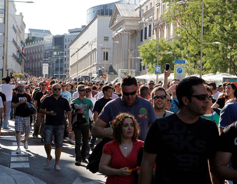 Proclamas como "¡ladrones! ¡Rajoy dimisión!" y ¡Ahí está la cueva de Alí Babá!", fueron las proferidas por un colectivo que consiguió cerrar al tráfico la madrileña Carrera de San Jerónimo.