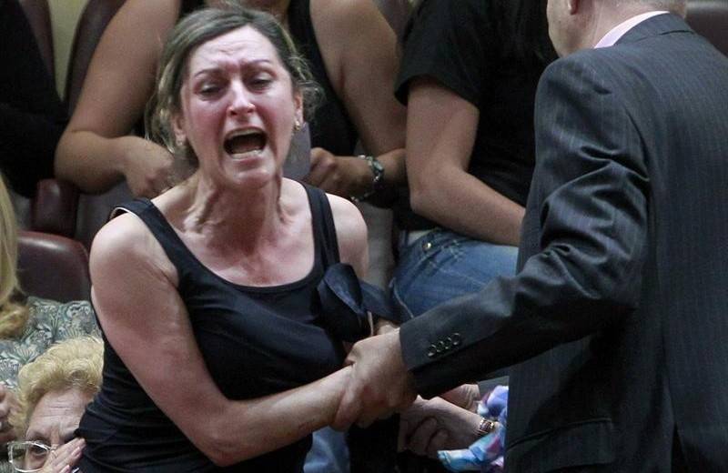 "¡Mentiroso! ¡Que se siente el ministro a negociar. Yo marché con 52 años!", se ha quejado la mujer. Varios agentes la han sacado entonces de la sala.