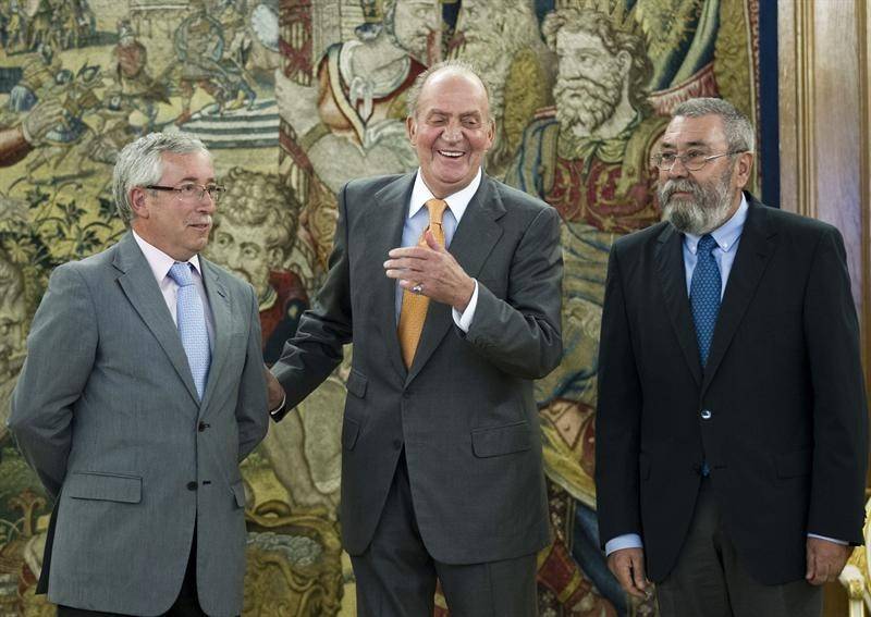Méndez subrayó entonces que el rey representa el valor del equilibrio, mientras que Fernández Toxo lamentó algunos comentarios de don Juan Carlos sobre los nuevos ajustes y los atribuyó a que solo conocía las grandes líneas del plan, por lo que pronosticó que, cuando conociera todo el contenido, el jefe del Estado cambiaría su discurso.