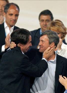 Las primeras intervenciones en el plenario de dirigentes que aferrados al marianismo como Valcárcel, Barberá, Camps y García Escudero retomaban el guión búlgaro de la autocomplacencia, aclamación al líder y ausencia total de autocrítica. Pero cuando hablaba Trillo se oyó un murmullo atronador. Llegaba José María Aznar que se fundía en un emotivo abrazo con Ángel Acebes que contrató con el gélido saludo sin ni siquiera mirarles a la cara a Mariano Rajoy y Manuel Fraga. No fue este el único saludo que dio que hablar. Otro ilustre veterano, Rodrigo Rato, apreció por sorpresa, tras aplazar un día un viaje a Singapur y, como Aznar, sólo buscó a Acebes para darle un sentido abrazo.