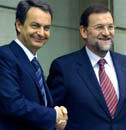 Zapatero recibió a Rajoy en la escalera de acceso al edificio principal del Complejo de la Moncloa y, tras posar para los informadores gráficos con un apretón de manos, accedieron al interior de la sala en la que se desarrolla la entrevista.