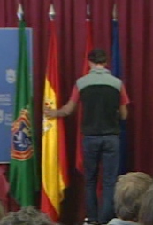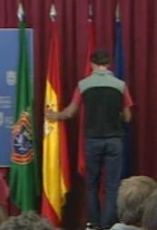 Antes de la comparecencia, Gastesi, ocultó tras una cortina de la sala de prensa del Consistorio las banderas española y europea. Durante toda la rueda de prensa, que se prolongó durante media hora, las banderas permanecieron ocultas detrás de una cortina en la sala situada detrás de los dos ponentes. A la vista, dejaron la bandera de Navarra y la de Pamplona. Al finalizar el encuentro informativo, las dos banderas se quedaron ocultas. Los concejales abandonaron la sala de prensa sin volverlas a colocar en su sitio.