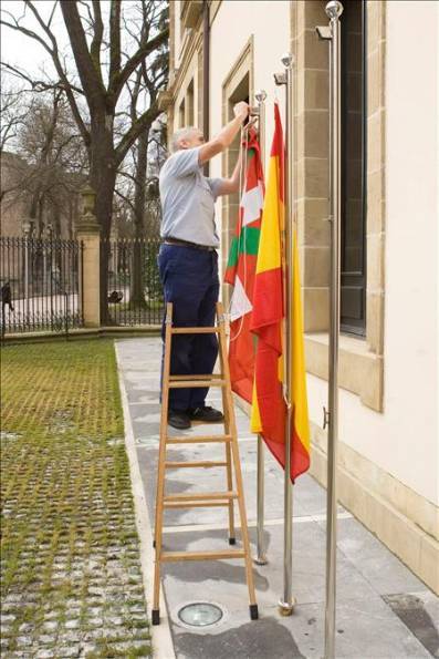 Velasco se propuso, entre otras cosas, que todos los edificios públicos pertenecientes a administraciones vascas cumpliesen con la Ley de Símbolos y Banderas. Es decir, que la enseña nacional ondease en ellos. Y tras conseguir que ya ondea en algunos consistorios vascos, en los juzgados vascos, y en edificios como las Juntas Generales de Guipúzcoa, este jueves, le tocó el turno al Parlamento vasco. Eso sí, en todos los casos ha sido necesario que hubiese una sentencia judicial por delante.