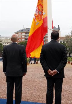 Por parte de las Fuerzas Armadas y de las Fuerzas de Seguridad del Estado han acudido, entre otros, el jefe del Estado Mayor de la Defensa (JEMAD), el general José Julio Rodríguez. La bandera, que se ha izado por un mástil de acero de cincuenta metros de altura, mide 290 metros cuadrados y pesa veinticinco kilos.