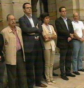 L D (Agencias) La concentración, que se celebró frente a la casa consistorial, transcurrió en silencio y sin incidentes durante 15 minutos, había sido convocada por la Junta de Portavoces del Ayuntamiento, con el apoyo de todos los grupos, excepto ANV.