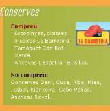 Como se aprecia en la siguiente imagen, la forma de dirigir el boicot es sencilla para que cualquier consumidor pueda entenderla. Se trata de una guía, una especie de cesta de la compra catalana que cada semana indica "qué hay que comprar". Una vez en esta sección nos encontramos con una larga lista de productos genéricos: vinos, aguas, limpieza, frutos secos, chocolates... Al consultar cualquiera de ellos, llega el boicot. Allí, bajo los epígrafes "COMPRAD" y "NO COMPREIS" aparecen, en cada caso, las marcas.