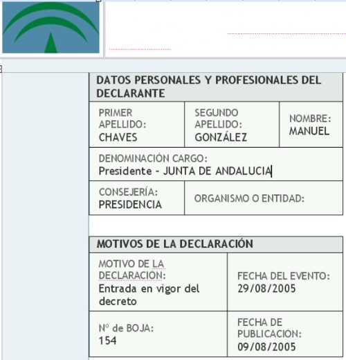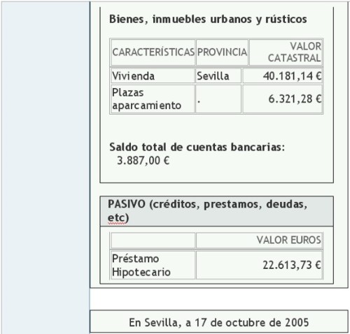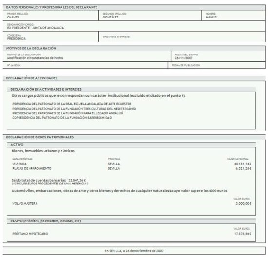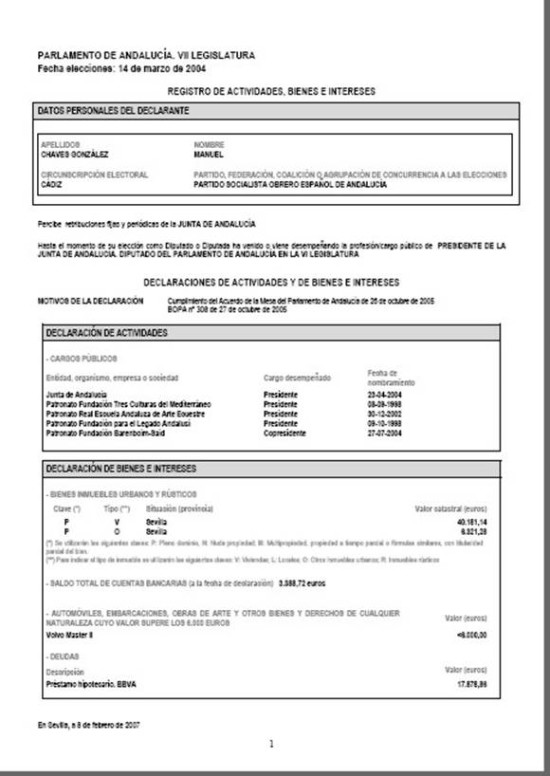 Declaración de bienes de Manuel Chaves de 2007, 8 de febrero