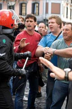 Efectivos de la Policía autonómica vasca dispersaron a los manifestantes, que se dirigieron a la cercana Parte Vieja, donde se produjeron enfrentamientos entre grupos de proetarras y agentes, que emplearon material antidisturbios y detuvieron a cinco personas acusadas de desórdenes públicos e imputaron a una sexta por insultarles. Los cinco arrestados, cuya identidad no ha sido facilitada, han quedado ya en libertad a la espera de comparecer ante la autoridad judicial, según han señalado las mismas fuentes.