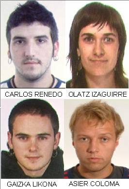 En la ciudad fronteriza de Ciboure fueron detenidos Carlos Renedo Lara, nacido en 1983 en Bilbao, y Gaizka Likona Anakabe, nacido en Lekeitio (Vizcaya). En San Juan de Luz fue arrestado Olatz Izaguirre Sagasti, nacido en 1983 en Urnieta (Guipúzcoa). Por último, en Hendaya fue detenido Asier Coloma Ugartemendía, nacido en 1979 en San Sebastián.