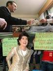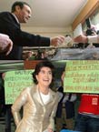 En el momento en que depositaba su voto en la Casa de Cultura Lugaritz de San Sebastián, dos jóvenes que portaban pegatinas del Partido Comunista de las Tierras Vascas se situaron frente a ella mientras mostraban unos carteles en euskera en los que se podía leer "elecciones antidemocráticas".