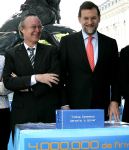 El líder del PP, Mariano Rajoy, acompañado del secretario general, Ángel Acebes; del portavoz parlamentario, Eduardo Zaplana; del presidente del partido en Cataluña, Josep Piqué, y de diversos diputados estuvieron presentes en el acto. Las más de 4.020.000 firmas que el PP comenzó a recabar desde el pasado 31 de enero acompañan a la proposición no de ley que el PP va a registrar hoy para pedir al Gobierno un referéndum en el que todos los españoles se pronuncien sobre el Estatuto de Cataluña.