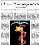 - ETA perderá su mejor aliado cuando el PP pierda las elecciones. Sin pareja y sin otra respuesta que el pacífico cumplimiento de las leyes y el respeto por las ideas pacíficas de la minoría abertzale, verá a su base social liberarse progresivamente de su tiranía armada. Seguirán en Batasuna escisiones como las de Aralar, hasta que, sin apoyos, ETA rinda las armas. Toda la historia etarra es una lenta paranoia suicida, pero su final es inevitable y está próximo. Los demócratas acabaremos venciendo a nuestros dos enemigos parejos más antiguos y tercos.