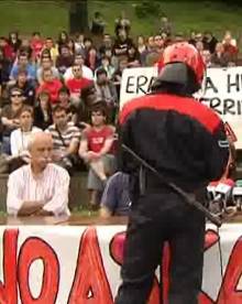 La conferencia de prensa fue interrumpida momentáneamente por la Ertzaintza, que identificó a los responsables de la comparecencia por no haber comunicado su celebración en la vía pública.
