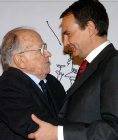 Rodríguez Zapatero calificó al ex líder del PCE de "ejemplo" político y elogió el legado de libertad dejado junto con un "ramillete de patriotas" en el que incluyó a Manuel Fraga, Felipe González, Adolfo Suárez, Jordi Pujol y Xabier Arzallus. "Así lo creo aunque no estén hoy todos aquí, a lo mejor por timidez", dijo Zapatero en alusión a la ausencia de dirigentes del PP en el homenaje y a la que se refirieron también otros intervinientes en el acto. "En todo caso, lehendakari, esta es una mesa larga y unitaria", dijo Zapatero dirigiéndose a Juan José Ibarretxe, presente en el acto. Por su parte, Ibarretxe intervino brevemente para asegurar que él y toda la sociedad vasca aprecian a Carrillo por su trayectoria política, mientras que el presidente extremeño, Rodríguez Ibarra, calificó al ex líder del PCE de "patriota" que "se sacrificó por la democracia".