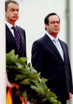 Minutos antes de la llegada de la Familia Real, accedió a la Plaza de Colón el jefe del Ejecutivo, José Luis Rodríguez Zapatero, recibido por cuarto año consecutivo por una parte del público con pitos y abucheos, esta vez en el momento en que la megafonía anunció su presencia.