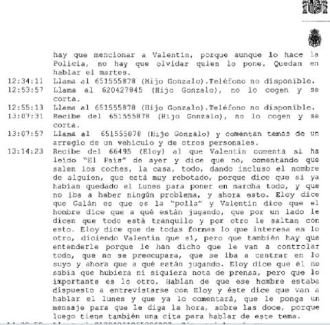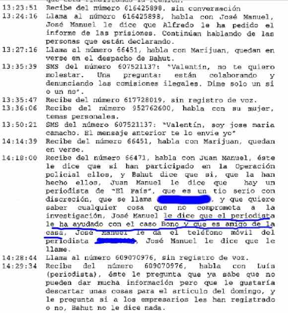 En los folios de ese sumario, uno de ellos reconoce expresamente que si ha hablado con un periodista de El País es porque así se lo había ordenado la superioridad. En otros momentos, se extrañan de que detalles de investigaciones complejas aparezcan publicadas en el diario de Prisa. Incluso a alguno de los periodistas del diario de Juan Luis Cebrián se les considera "amigos de la casa" y se les atribuyen méritos como el de haber ayudado en el caso Bono, en referencia a la supuesta agresión sufrida por José Bono en una manifestación contra el terrorismo en Madrid.