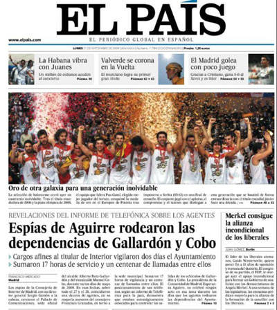 El País publica que los supuestos espías de la Consejería de Interior de Madrid con su director general, Sergio Gamón, al frente, cercaron el Palacio de Comunicaciones de Madrid.
