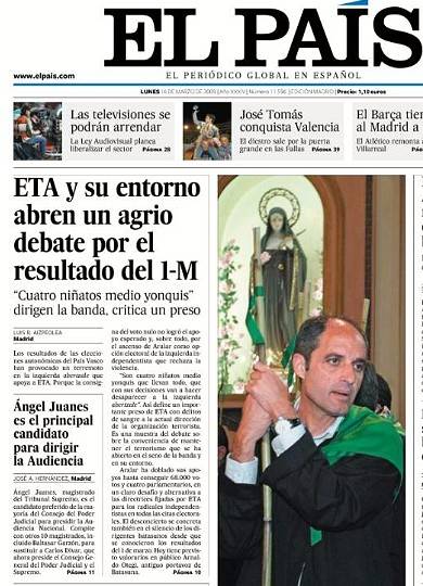 El diario de Prisa dedica una página entera de su sección de Nacional a recuperar su discurso sobre la división interna de la banda terrorista ETA, entre los que buscan una negociación y los que seguirían apostando por los atentados. De este modo, deja entrever que la situación podría ser proclive para el inicio de una nueva negociación entre los terroristas y el Gobierno Zapatero.