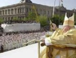 El 5 de mayo de 2003, el rotativo progresista publicó: "Una muchedumbre estimada en un millón de personas por la Delegación del Gobierno rodeó ayer al Papa durante la ceremonia de canonización de cinco españoles en la plaza Colón, de Madrid. Fue el acto central de la quinta visita a España de Juan Pablo II, quien instó a los españoles a mantener sus "raíces cristianas" y hacerlas valer en la construcción europea, como "evangelizadores" de la nueva UE de 25 miembros. El Pontífice recibió al líder del PSOE, José Luis Rodríguez Zapatero, almorzó con la Conferencia Episcopal y se reunió con la Familia Real, antes regresar a media tarde a Roma. No fue un adiós, sino un hasta luego. "Habrá que fijar fecha para la sexta visita", le dijo el Papa a la Reina.