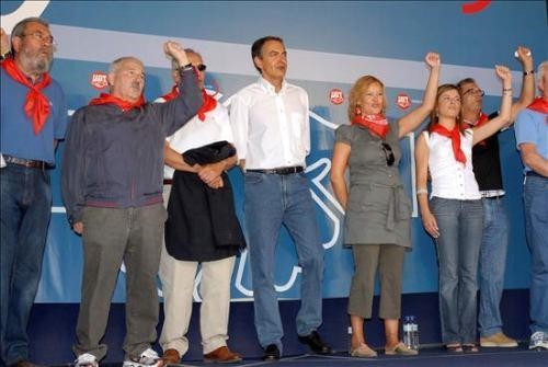 El presidente del Gobierno, también como cada año, cantó sin levantar el puño, un gesto que sí hicieron, al final del himno, la secretaria de Organización del PSOE, Leire Pajín, y la ministra de Igualdad, Bibiana Aído, al igual que el ex vicepresidente y ex vicesecretario general del PSOE, Alfonso Guerra.
