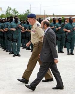 (Libertad Digital) Su Majestad el Rey, el ministro del Interior, Alfredo Pérez Rubalcaba, y el nuevo director de la Policía y la Guardia Civil, Francisco Javier Velázquez, se desplazaron este jueves hasta las dependencias del Colegio de Guardias Jóvenes, situado en la localidad madrileña de Valdemoro, para conmemorar el 30 aniversario de la formación de la unidad de élite de la Benemérita: la Unidad Especial de Intervención.