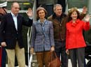El avión en el que han viajado Don Juan Carlos y Doña Sofía, un Airbus 310 de la Fuerza Aérea Española, aterrizó a las siete de la mañana de este jueves en el Pabellón de Estado del aeropuerto de Barajas, donde los monarcas fueron recibidos por la ministra de Fomento, Magdalena Álvarez, el delegado del Gobierno en Madrid, Constantino Méndez, y el alcalde de la capital española, Alberto Ruiz Gallardón.