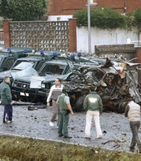El director general de la Guardia Civil, Joan Mesquida, precisó que el atentado ha sido cometido por varios individuos que han entrado con un coche marcha atrás para que la onda expansiva afectara directamente al cuartel. Mesquida hizo estas declaraciones en Durango, a donde se desplazó tras conocer la noticia de que ETA había hecho estallar en el cuartel de la Guardia Civil una furgoneta-bomba, que ocasionó heridas leves a dos agentes de la Benemérita. Este vehículo, según preciso, pudo haber sido sustraído hace dos días.