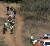Técnicos de Desactivación de Explosivos (TEDAX), acompañados de perros, rastrean el paraje donde explosionó la autocaravana al darse cuenta de que había sido detectada por la Guardia Civil. La explosión del vehículo provocó un socavón de una decena de metros, calcinó siete olivos y la base de sustentación de una torre del tendido eléctrico, según testigos. Los primeros análisis de los miembros del Grupo de Expertos en Desactivación de Explosivos (GEDEX) de la Guardia Civil cifran en 80 kilos la cantidad de explosivo los que explotaron en la furgoneta.