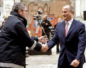 El primer gesto de normalidad entre los dos dirigentes tras la bronca campaña electoral a la Alcaldía de la capital que ambos protagonizaron en 2007 fue el saludo. Gallardón, que había llegado primero acompañado por muchos de los miembros de su Ejecutivo, se acercó al coche del ministro a su llegada a la zona. Ambos se sonrieron afectuosamente y se dieron un apretón de manos que dejaba claro que cualquier rencilla es ya agua pasada. De hecho, Sebastián llegó incluso a afirmar que "no había ningún enfrentamiento". "Hubo una campaña que está ya olvidada, una campaña muy dura por las dos partes, y ahora lo que hay que hacer es trabajar juntos para salir de la crisis. Es lo que intentamos hacer todos, por lo menos algunos", añadió.