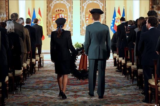 Flanqueado por los ministros de Defensa, Carmen Chacón; e Interior, Alfredo Pérez Rubalcaba, Zapatero hizo entrega de un documento oficial y una placa conmemorativa a los familiares de los policías y guardias civiles fallecidos, después de que una banda de música formada por miembros de ambos cuerpos tocara el himno nacional. Al final del acto, compañeros de los fallecidos depositaron una corona de laurel a los acordes de la "Muerte de Ase", de la suite número 1 del drama "Peer Gynt", interpretado por el grupo de cámara de la Escuela Superior de Música Reina Sofía.