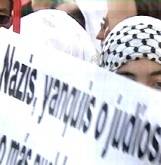 (Libertad Digital) Varios miles de personas se han manifestado este jueves en Madrid contra Israel, convocadas por el PSOE, los sindicatos y algunas asociaciones de izquierdas. El tono de la manifestación no ha podido ser más agresivo contra Israel, con banderas palestinas y republicanas que se mezclaban con pancartas y gritos con todo tipo de insultos a Israel como terrorista, genocida, asesino. Incluso había carteles con lemas tan abyectos como: "Nazis, yanquis y judíos, no más pueblos elegidos". También se acusaba abiertamente de genocidio al Estado de Israel.