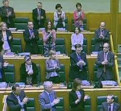 El lehendakari agradeció el trabajo a sus consejeros, a quienes les ha dicho que ha sido un "honor" trabajar con ellos, y ha animado a su partido, al PNV, a que no olvide que la sociedad vasca le ha dado "el liderazgo político" en las últimas elecciones. Ha pedido a su partido que "lidere este país" desde las diputaciones forales, que gobierna las tres, los ayuntamientos y "desde este Parlamento". Al acabar, ha sido despedido con un fuerte aplauso por los parlamentarios de su grupo, el PNV, puestos en pie.