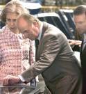 Con un cuarto de hora de retraso motivado por las condiciones meteorológicas, los Reyes, acompañados por la ministra de Vivienda, María Antonia Trujillo, saludaron, junto al lehendakari, al presidente del Parlamento Vasco, Juan María Atutxa.