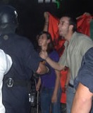 A la salida, treinta personas estaban esperando a Arcadi y a los otros ponentes en la puerta principal, por lo que se fueron hacia la puerta de atrás. Los agresores fueron entonces corriendo hacia ellos gritando "cuatro ojos, que te metan un petardo por el culo, ojalá te mueras". Ante la virulencia de la agresión, Arcadi Espada tuvo que ser escoltado por los antidisturbios.