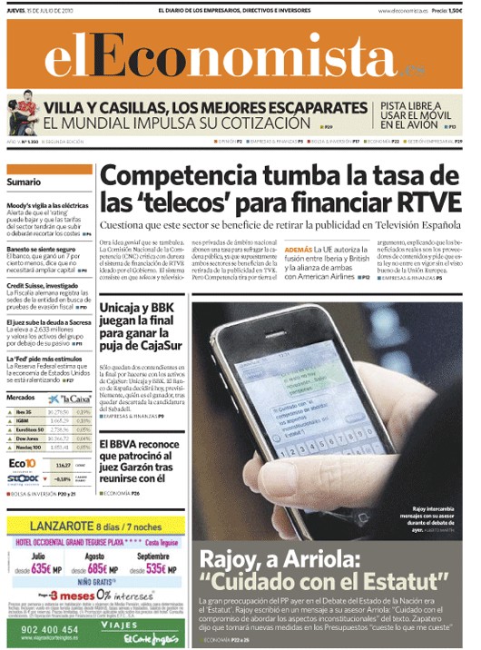 Extracto de la portada de El Economista con el móvil de Rajoy.