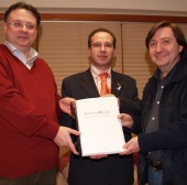 (Libertad Digital) Después de acudir al acto organizado por la Asociación de Víctimas del Terrorismo, el editor de Libertad Digital, Federico Jiménez Losantos, y el colaborador de este diario y director de La Linterna de la COPE, César Vidal, han querido entregar personalmente a Francisco José Alcaraz los miles de mensajes que los lectores han enviado en apoyo de Eduardo Fungairiño.
