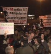 El vicepresidente de la asociación de víctimas fue interrumpido en varias ocasiones con gritos de "¡Zapatero dimisión!" o "¡Libertad, libertad!" por los asistentes, que portaban banderas de España y proclamas exigiendo la verdad sobre los atentados de 2004. Los asistentes a la concentración también encendieron velas en memoria de las 192 víctimas que se cobró la masacre.