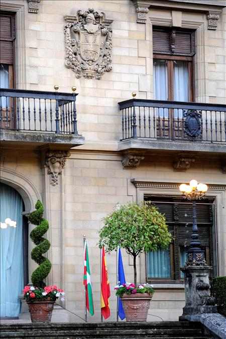La ikurriña y las banderas de España y europea se encuentran colocadas en la fachada principal del Palacio, la que es visible desde el exterior. El pasado 2 de junio el Gobierno Vasco ya colocó la ikurriña y las banderas de España y Europa en la entrada de su sede central del barrio vitoriano de Lakua, porque, como en otras dependencias autonómicas, no había colocada ninguna bandera en el exterior.