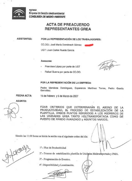 Pues viene esto a cuento porque José María Domenech Gómez, hijo del ya mencionado Domenech Mata, trabaja en el GREA, Grupo de Rescate y Emergencias de Andalucía, al menos desde 2007. Pero no figuraba en las listas de especialistas admitidos para las pruebas, que obran en nuestro poder. ¿Y cómo entra uno en el GREA sin estar en la lista de los que iban a hacer la oposición? A lo mejor iba en la lista de Jefes.