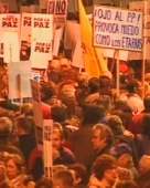 El objetivo anti-terrorista de la convocatoria pronto quedó arrumbado por las consignas contra la Oposición.Reporteros de Tele Madrid [el único canal de televisión que transmitió en vivo la manifestación, de principio a fin] recibieron insultos y empujones a lo largo del recorrido.