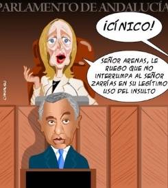 Pueden comprobar cómo en el Diario de Sesiones no aparece la exclamación del señor Zarrías llamando cínico a Javier Arenas.. En realidad, debería haber aparecido lo siguiente: "El señor Zarrías exclama desde su escaño: "¡Cínico!".