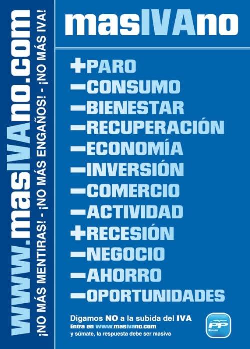 “¿Sabes por qué Zapatero nos sube dos puntos el IVA? Porque él no quiere apretarse el cinturón, prefiere que te lo aprietes tú, prefiere pagar subsidios a crear empleo porque necesita más dinero para mantener ministerios inútiles”, se puede leer en los más de medio millón de folletos y octavillas que se van a repartir por toda la Comunidad de Madrid.