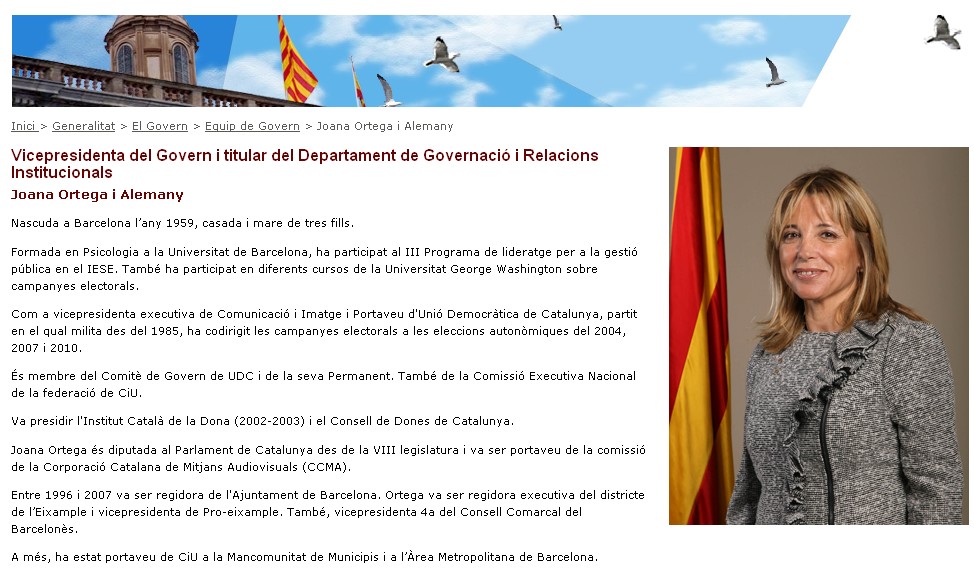 La vicepresidenta de la Generalidad, Joana Ortega, incluyó en su perfil de la web del Gobierno catalán un dato falso: que es licenciada en Psicología. En realidad, a Ortega le faltan dos asignaturas para terminar la carrera.