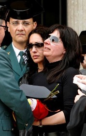 Los restos mortales de Juan Manuel Piñuel Villalón fueron incinerados este jueves por la tarde en el cementerio de Málaga tras una emotiva misa funeral a la que asistió María Victoria, acompañada de familiares, amigos y alrededor de trescientos guardias civiles.